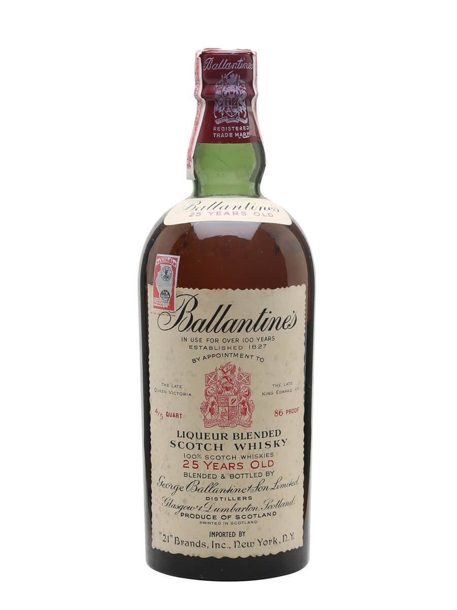 An very rare bottle of Ballantine’s 25-year-old bottled in the 1950s for the US market only.